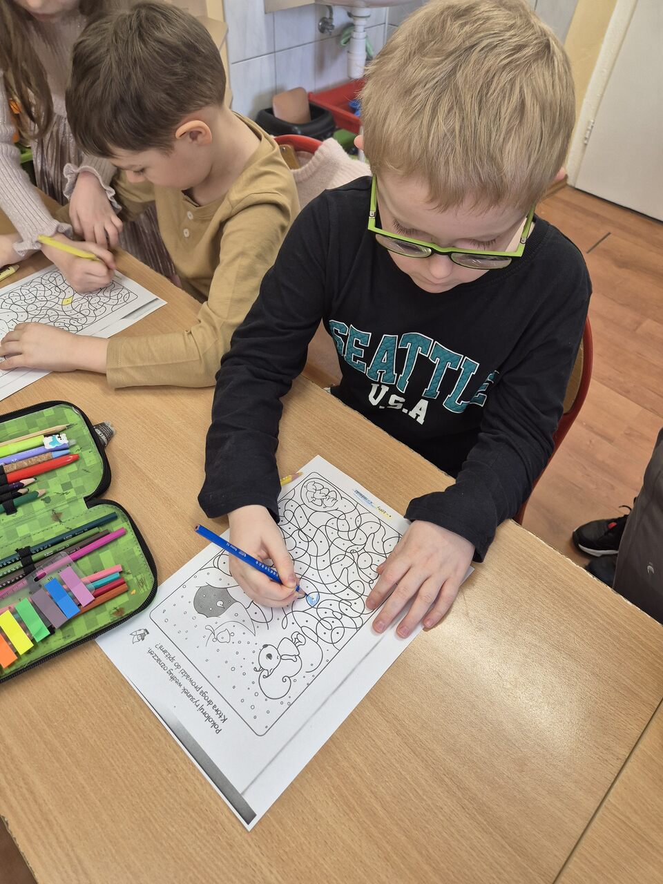 Sześciolatki na zaproszenie SP 44 wzięły udział w wyjątkowych zajęciach przygotowujących je do roli ucznia. Dzieci uczestniczyły we fragmencie lekcji, pracowały z kartami pracy oraz z zaangażowaniem rozwiązywały zagadki. Następnie na sali gimnastycznej czekały na nie zabawy ruchowe, które dostarczyły im wiele radości i pozytywnej energii. To było cenne i inspirujące doświadczenie dla przyszłych pierwszoklasistów.