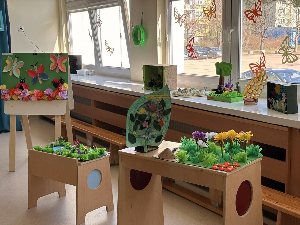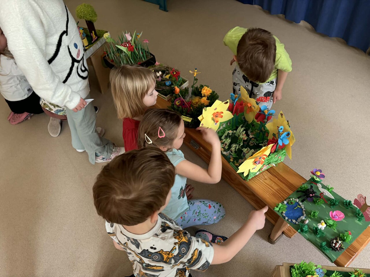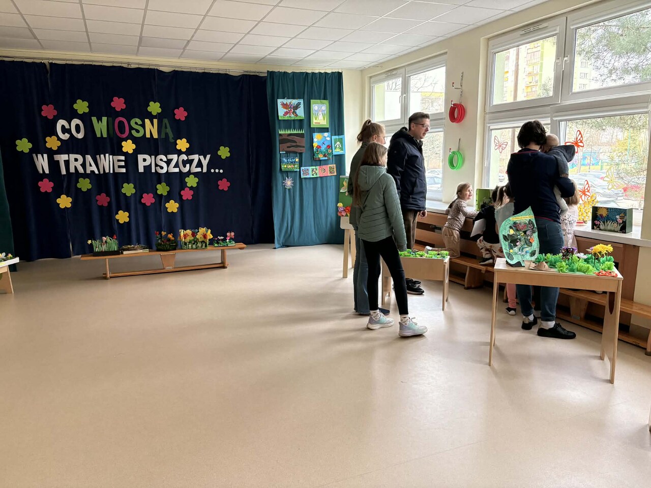 W naszym przedszkolu odbył się wyjątkowy wernisaż pod hasłem "Co wiosną w trawie piszczy?". Dzieci, wspólnie z rodzicami oraz całymi grupami przedszkolnymi, przygotowały niezwykłe prace plastyczne inspirowane wiosenną przyrodą. Na wystawie można było podziwiać różnorodne rośliny, owady oraz zwierzęta, które budzą się do życia wraz z nadejściem wiosny. Każda praca była pełna pomysłowości, kolorów i dziecięcej wyobraźni. Wernisaż został zorganizowany na sali gimnastycznej, gdzie przez cały tydzień dzieci wraz z rodzicami miały możliwość oglądania prac w wyjątkowej atmosferze, przy dźwiękach relaksacyjnej muzyki. Miło nam było również gościć dwie klasy ze Szkoły Podstawowej nr 44 wraz z nauczycielkami, które odwiedziły naszą wystawę i z zainteresowaniem oglądały przygotowane dzieła. Serdecznie dziękujemy wszystkim dzieciom i rodzicom za zaangażowanie oraz wspólne stworzenie tej pięknej, wiosennej galerii!