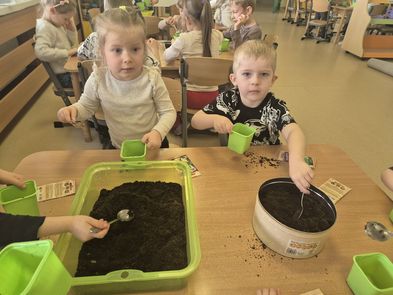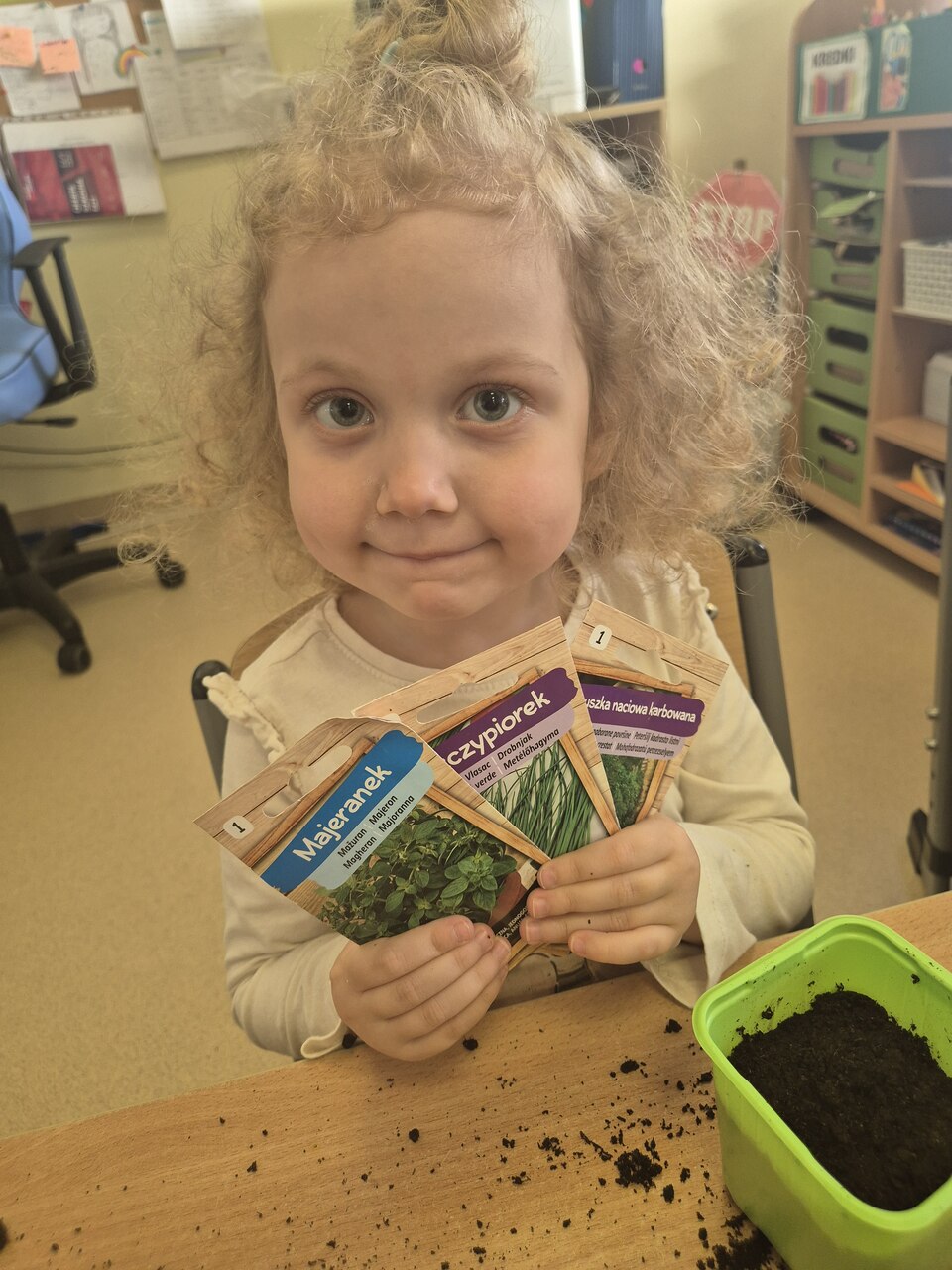 Dzieci z grupy zielonej założyły swój własny wiosenny ogródek.W ogródku znalazły się nasiona różnych przypraw i warzyw między innymi tymianek, bazylia, szczypiorek, koperek, oregano.