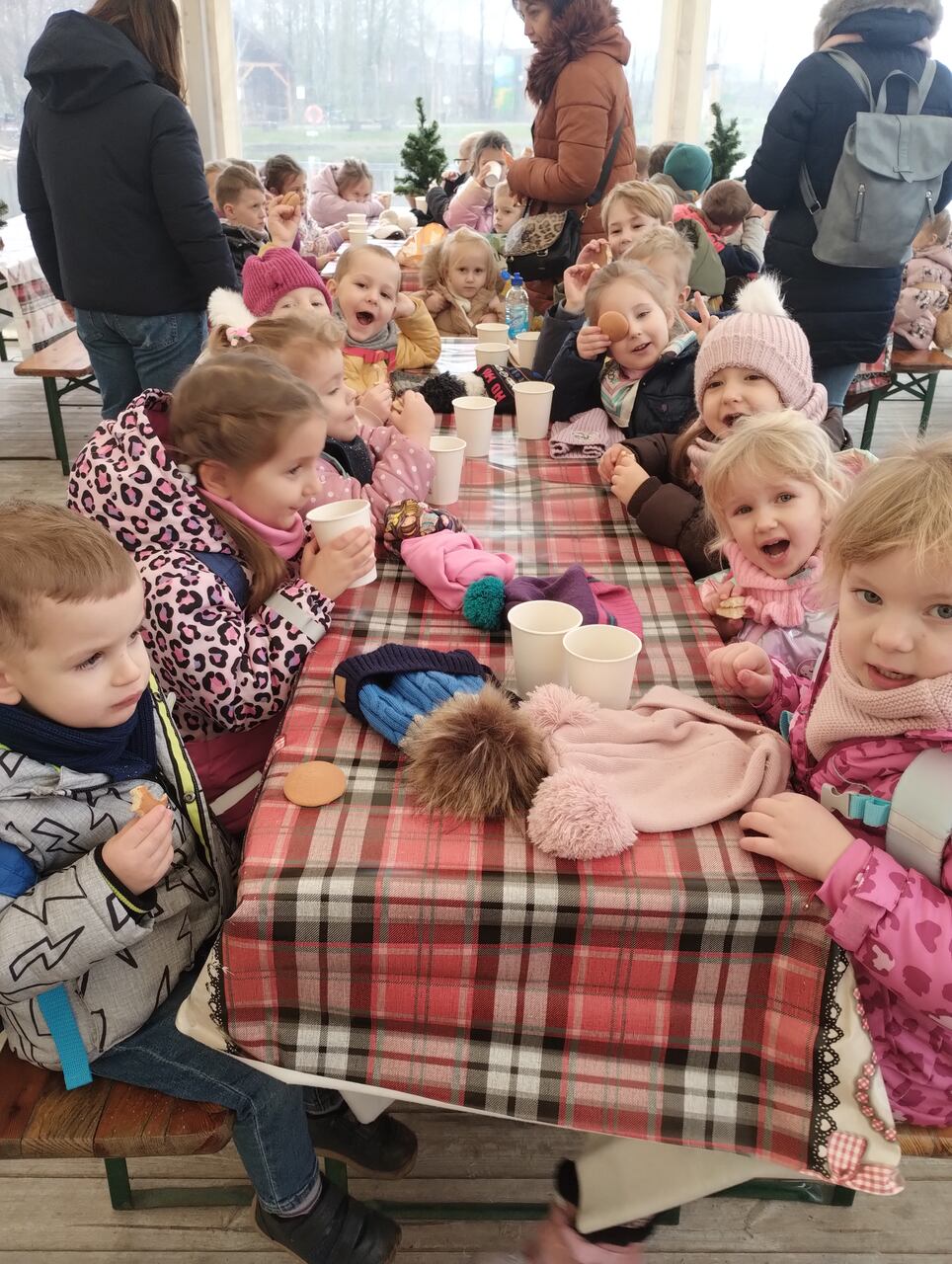 W dniu 05.12.2025 r. dzieci z grypy Niebieskiej wyjechały na wycieczkę autokarową do Dobronianki. Na miejscu dzieci spotkały się ze Św. Mikołajem, który wręczył im prezenty – niespodzianki. Było mnóstwo świetnej zabawy! Dzieci miały także okazję spotkać różne zwierzęta: renifery, alpaki, surykatki, serwale, kangury, owce, osły, wiewiórki, króliki. Niektóre zwierzęta można nawet było nakarmić pod okiem doświadczonych opiekunów. Dzieci były zachwycone wycieczką, a zwłaszcza Mikołajem i zwierzątkami!